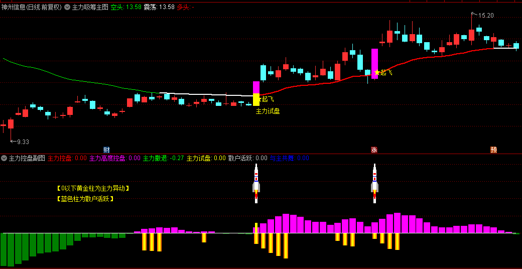 通信达【主力吸筹+主力控盘】主图/副图/选股,提示主力异动,揭示市场调整节奏,反映市场跃度!