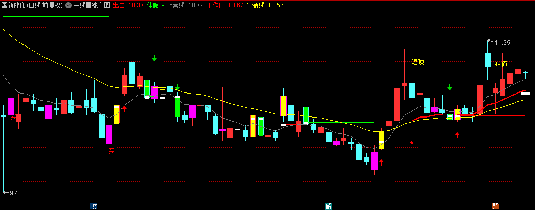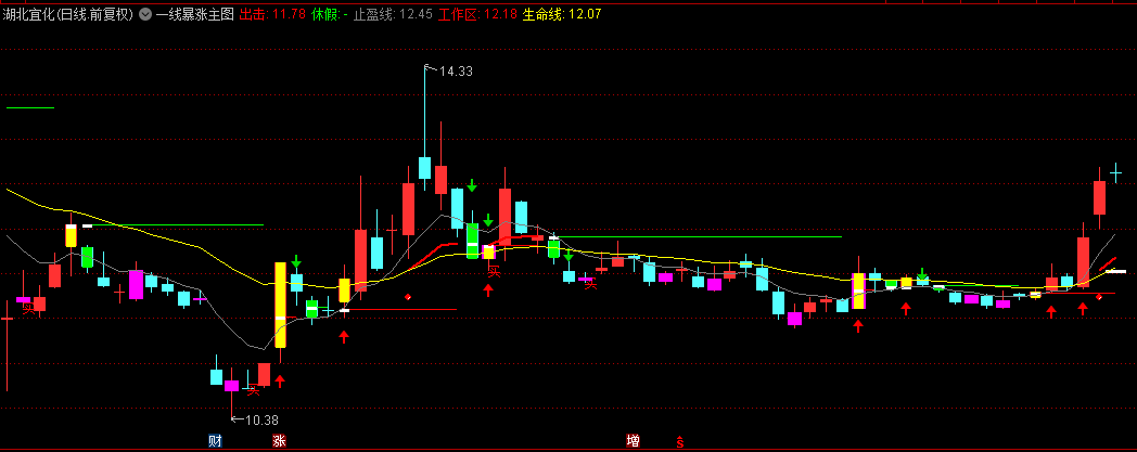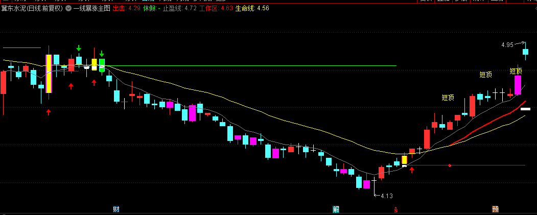 2. 黄色生命线作为中期多空分界,股价突破时触发看涨图标;
