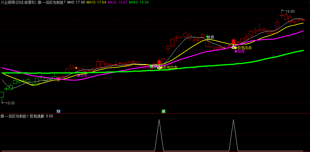 一招擒牛+爆点信号+反包出击技术指标它集合了均线、MACD、趋势突破、反包形态等多个经典战法。该系统特别强化对"阳包阴"反转形态的识别灵敏度,黄金交叉与死亡叉的箭头提示,配合量能潮指标,形成完整的"趋势确认-动能爆发-离场预警"交易闭环。