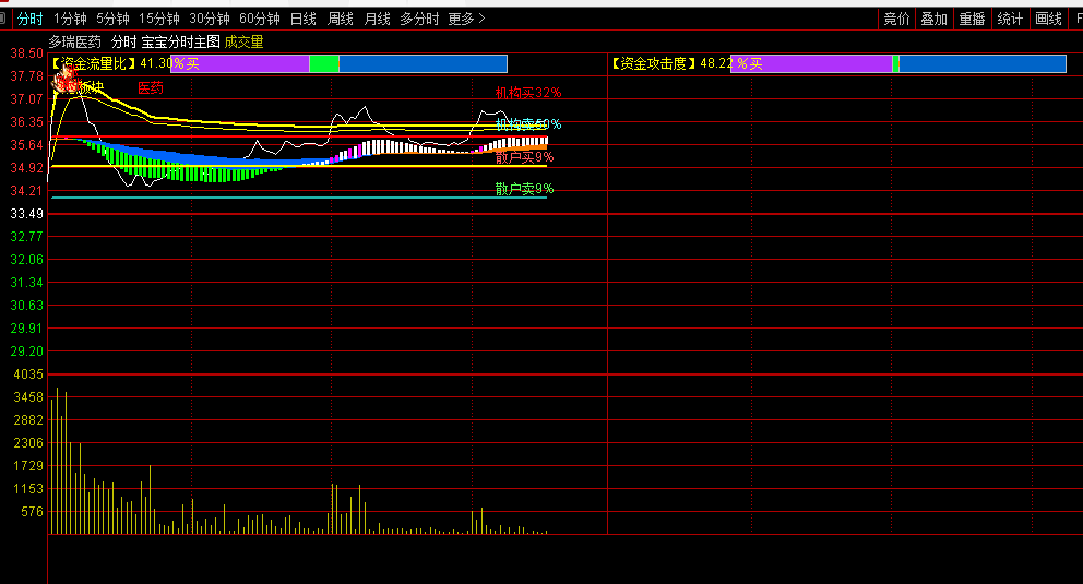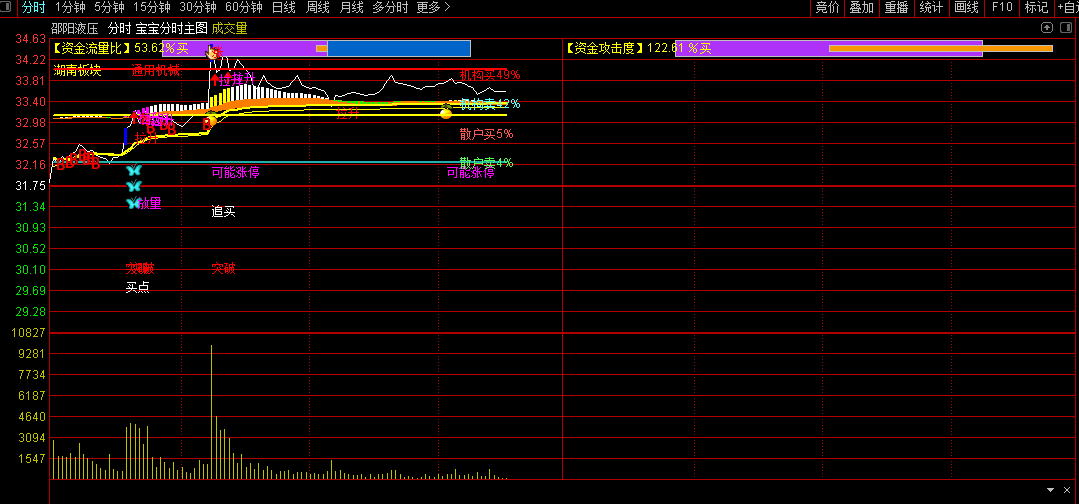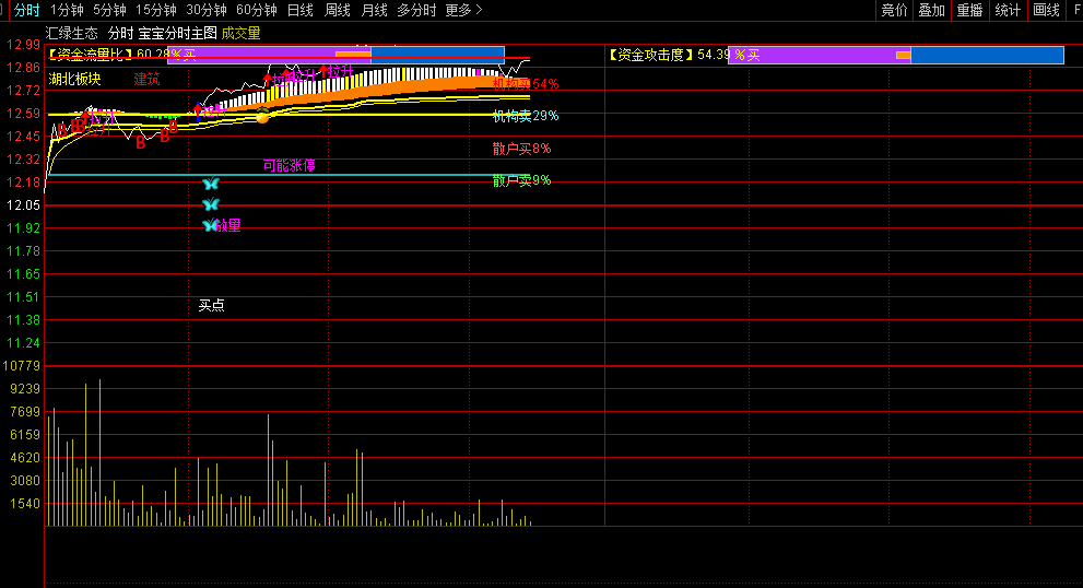 宝宝分时抓涨停主图就是按照这三要素制作而成,结合个股日线,当天抓涨停实战效果非常好!