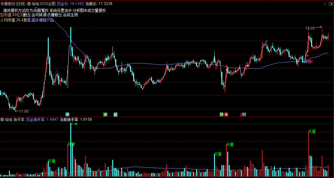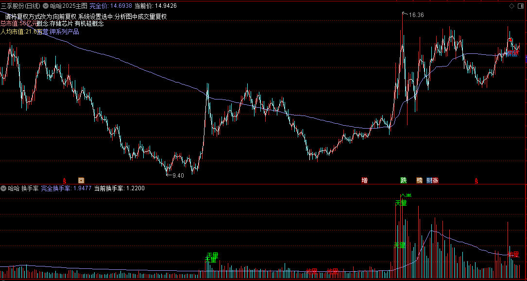 看副图:地量地价 买入,天量天价 卖出。自动 显示 预测 今日 换手率,并 判断 今日 天量。