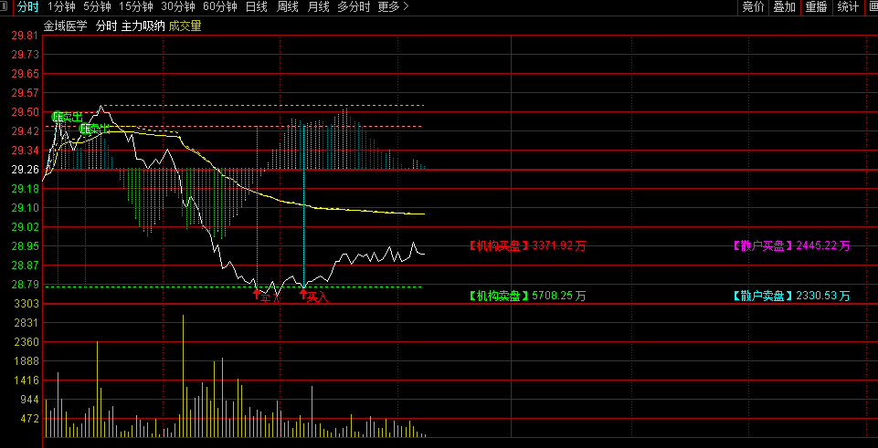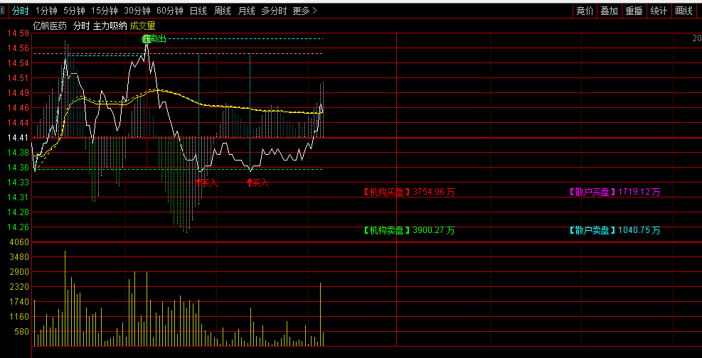 通达信【主力吸纳】分时主图指标,当日拉升检测,大资金短线异动信号!
