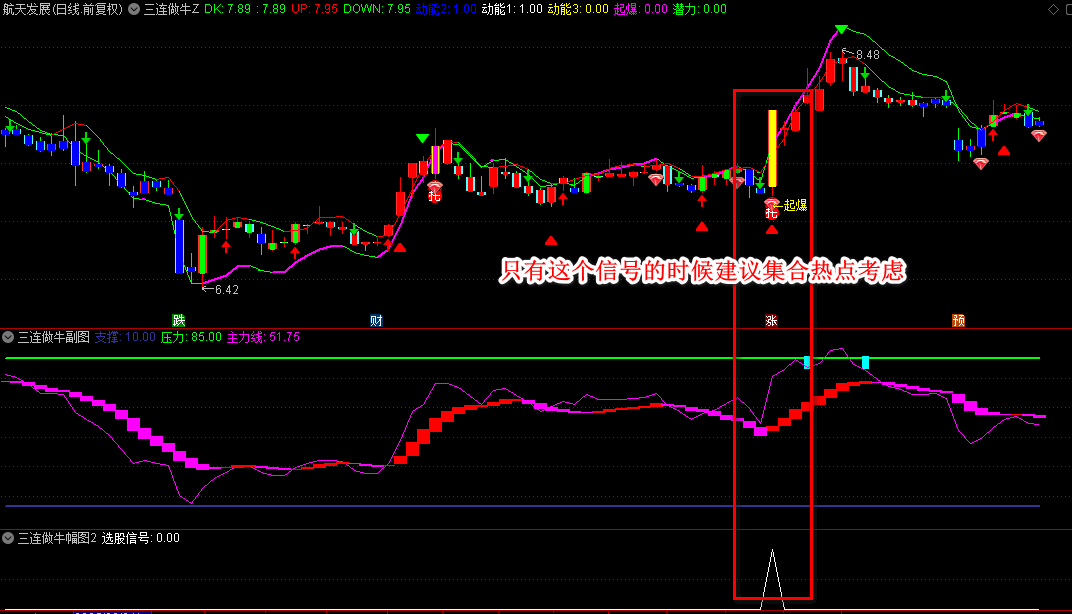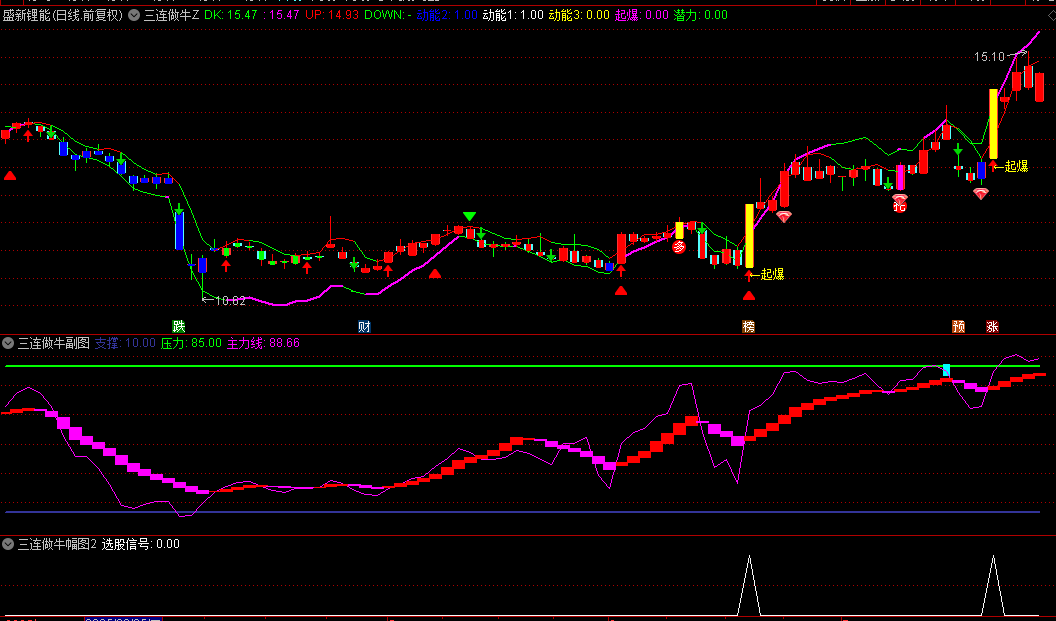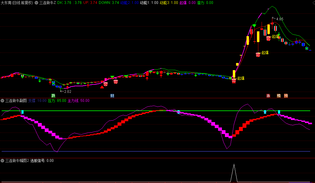 【三连做牛】主图/幅图/选股指标 多周期EMA共振 量能动能验证 超买超卖过滤