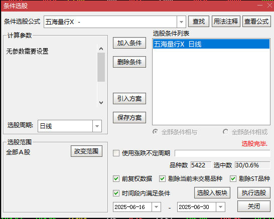 严格筛选【五海量行】副图/选股指标 基于量价共振的尾盘交易策略 无未来
