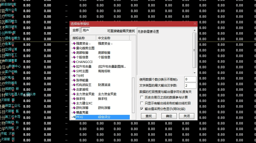 【PFJG1】副图指标,选股后"综合评分"打分系统,找出前20名强股!
