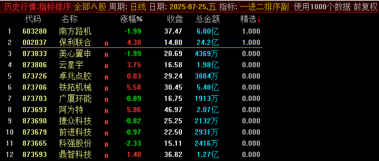 福利来了:首板和一进二 融合 指标一进一和一进二融合,9.25直接输入.401 。一次筛选出一进一和一进二。个人觉得首版安全一点,一进二连续失败几天,已经麻木了。