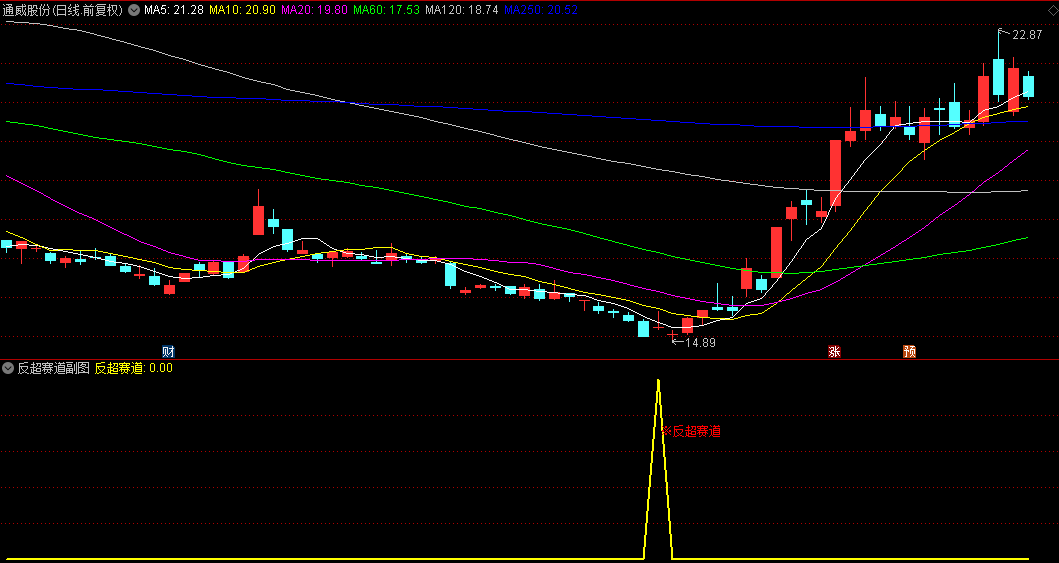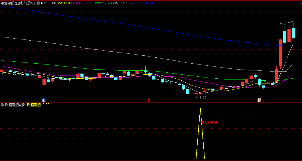 该指标特别适用于趋势转折初期,当“反超赛道”信号出现时,往往伴随主力资金进场。