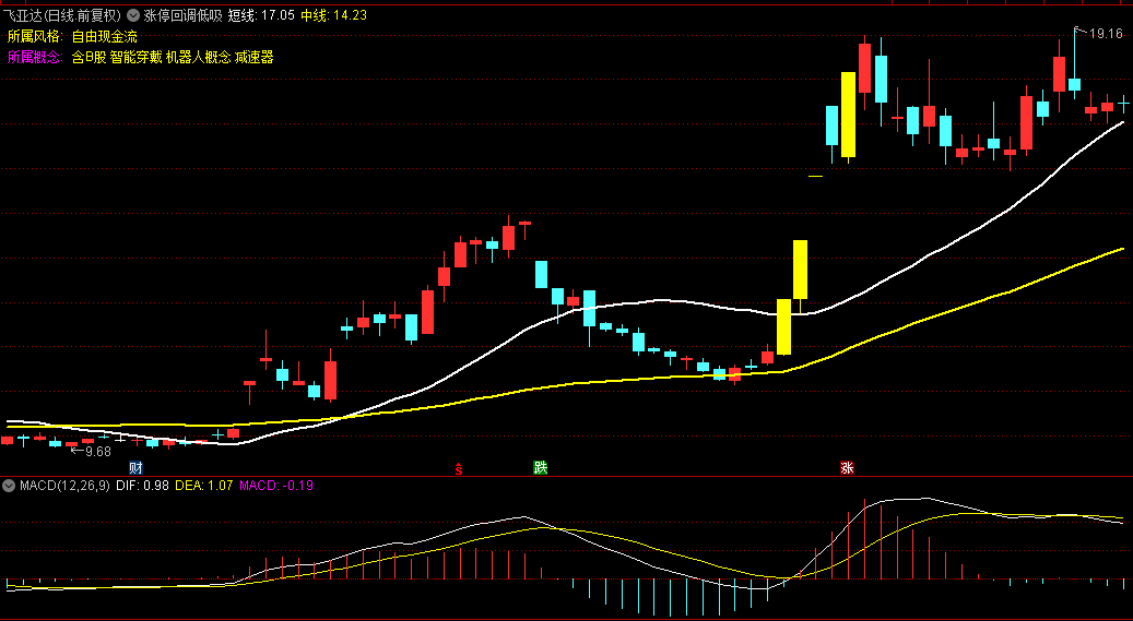 指标说明:强势股一般回调到第5天、第8天会有买入机会,超过13天行情就会走弱。如上图第一次出现涨停后出现回调,只要该股没跌破涨停阳线的7%我们就要跟踪他,而且我们的买入价离7%越近越好,但是该股如第二次涨停回落那样跌破7%的话,我们就要坚决止损出局,往往一次操作的话您可能只损失2-3个点。亲测止盈止损各5个点,成功率是挺高的.