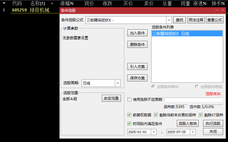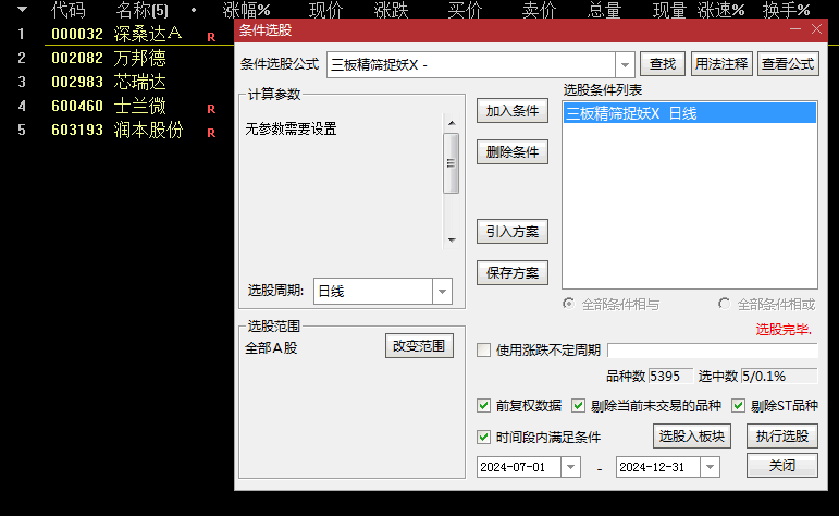 本战法通过严格条件筛选优质回调股,信号稀缺但准确率高,2024年下半年才5个信号,今年半年才1个信号。
