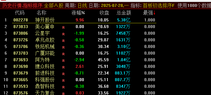 今日首板竞价表现优异,特分享首板竞价排序指标。该指标已排除科创板股票,专注主板与创业板机会。