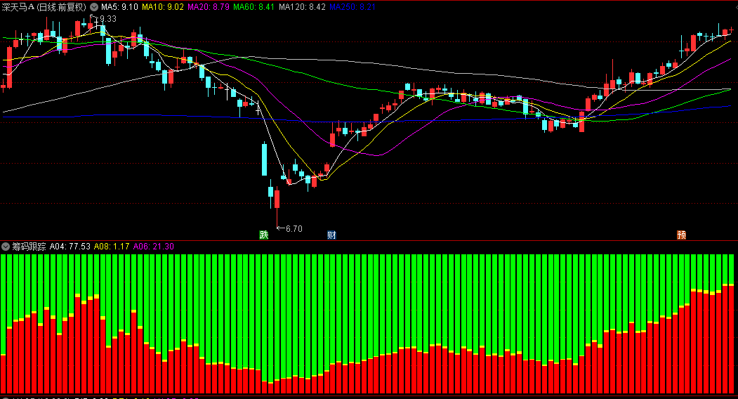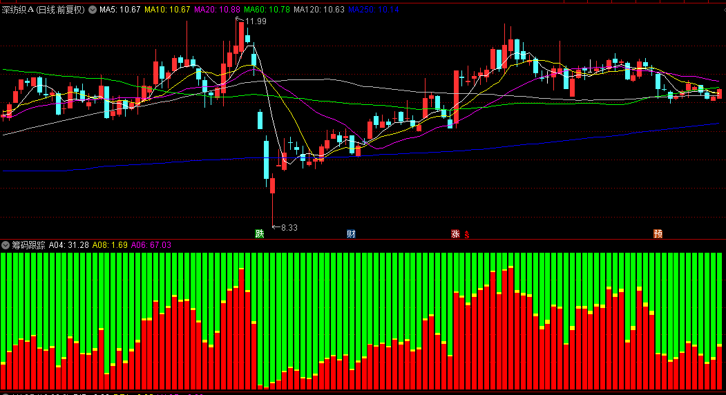 【筹码跟踪】副图指标,通过红黄绿三色柱体的比例变化,直观揭示筹码结构演变!