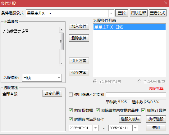 2.选股功能:直接筛选“星星主升”信号个股,优先选择:主板股票连续涨停≤3次,或创业板涨停后短期缩量调整。近5日振幅收窄且未放量,随后放量突破15日内高点。