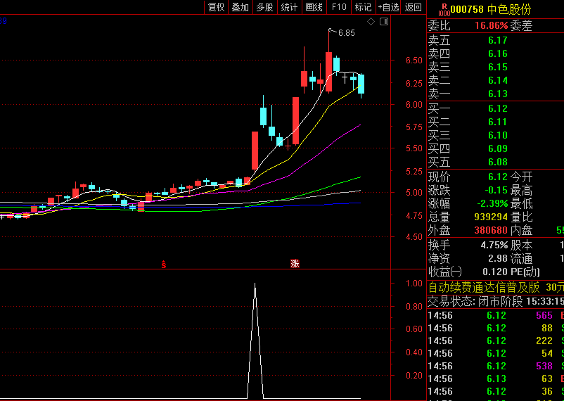 本指标用于追踪个股筹码分布变化,识别主力成本区,辅助判断波段买卖点。当股价突破筹码峰时,可能预示趋势延续;若反复测试未破,则需警惕变盘。 结合筹码峰:若股价回调至筹码峰附近企稳,可能为低吸机会;若放量跌破筹码峰,需注意风险。