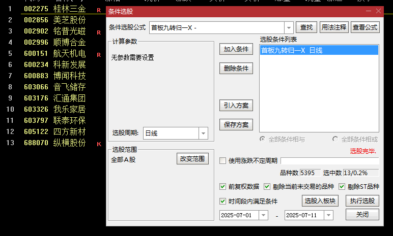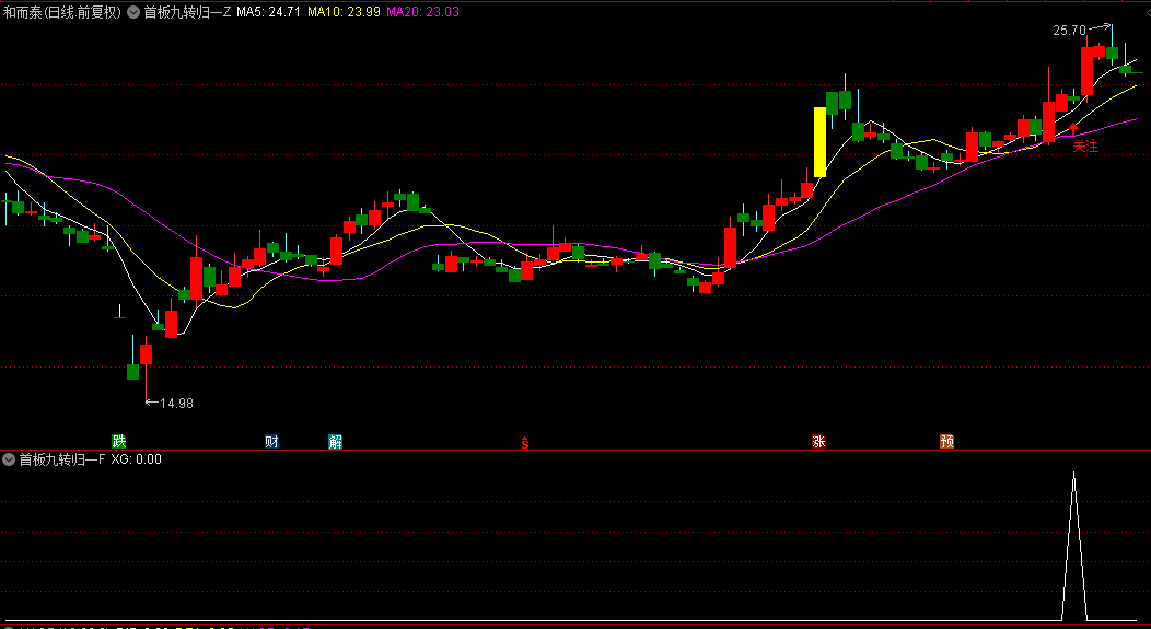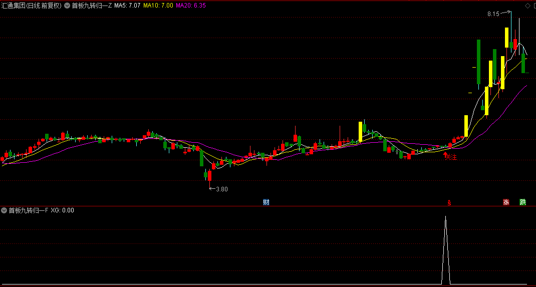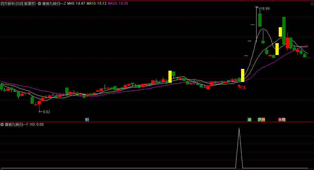 首板九转归一指的是首板出现之后,震荡回调的过程中出现典型的九转信号,这个九转指标我们系统中自带有,名字叫做神奇九转,我就不分享了,大家可以自己去调出来;该指标不含未来函数!