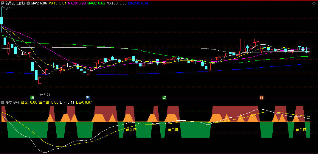 3.黄金坑提示:若出现“黄金坑”文字标记,意味着股价经历短暂超跌后企稳,是潜在低吸机会。