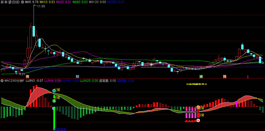 某网付费指标【MACD60分钟波段高阶玩法】副图/选股指标 60分钟周期出现红色小三角时买入!