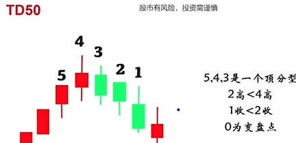 1,5,4,3是一个顶分型。(第5,第4,第3个K线是一个顶分型)