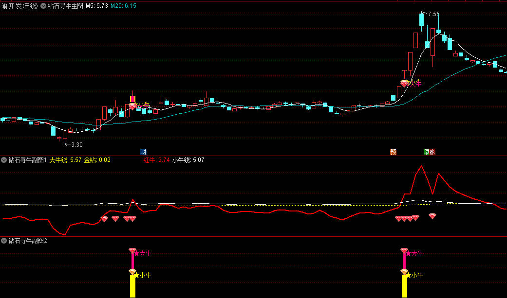 钻石寻牛主图 2副图 2选股指标 无未来