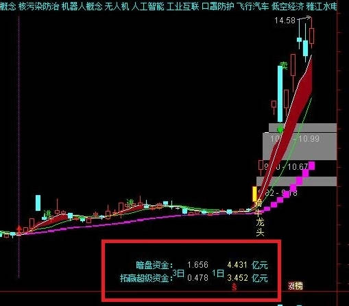 暗盘资金及拓赢机构资金在主图右下角显示,含1日和3日;