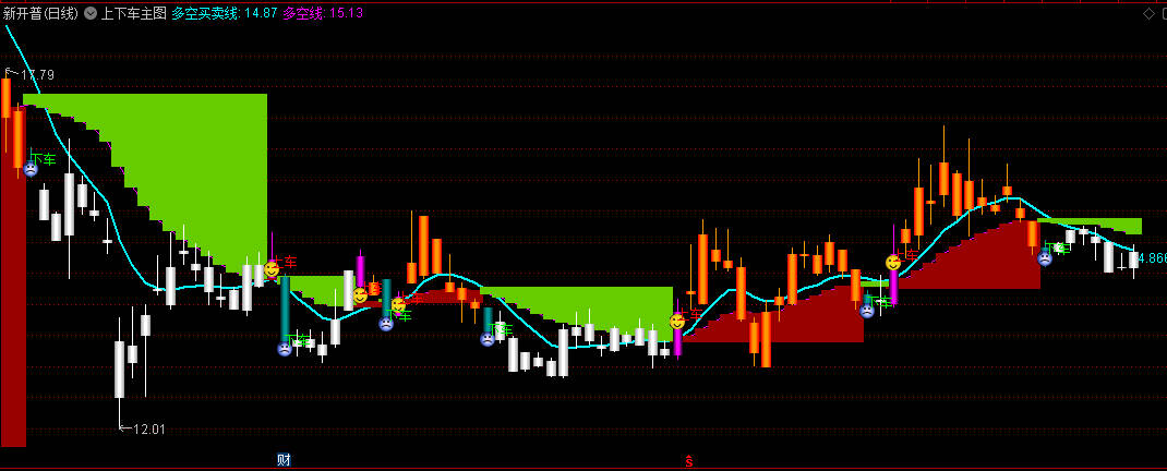 通达信【上下车】副图指标,通过动态计算多空买卖线及趋势强度,判断个股买卖时机!