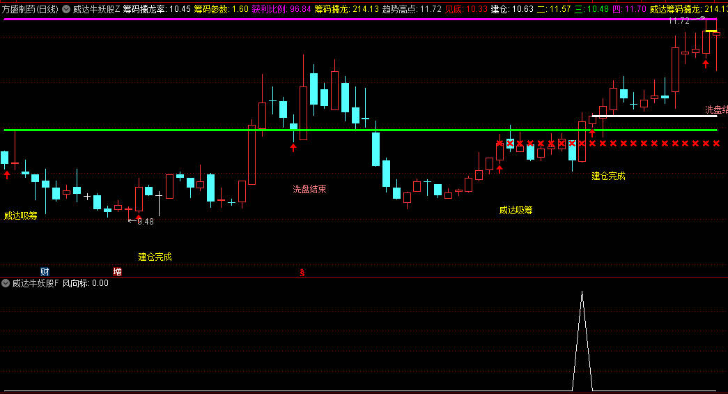 通达信【威达牛妖股】主图/副图/选股指标 直观显示筹码集中度 用于确认趋势反转时机