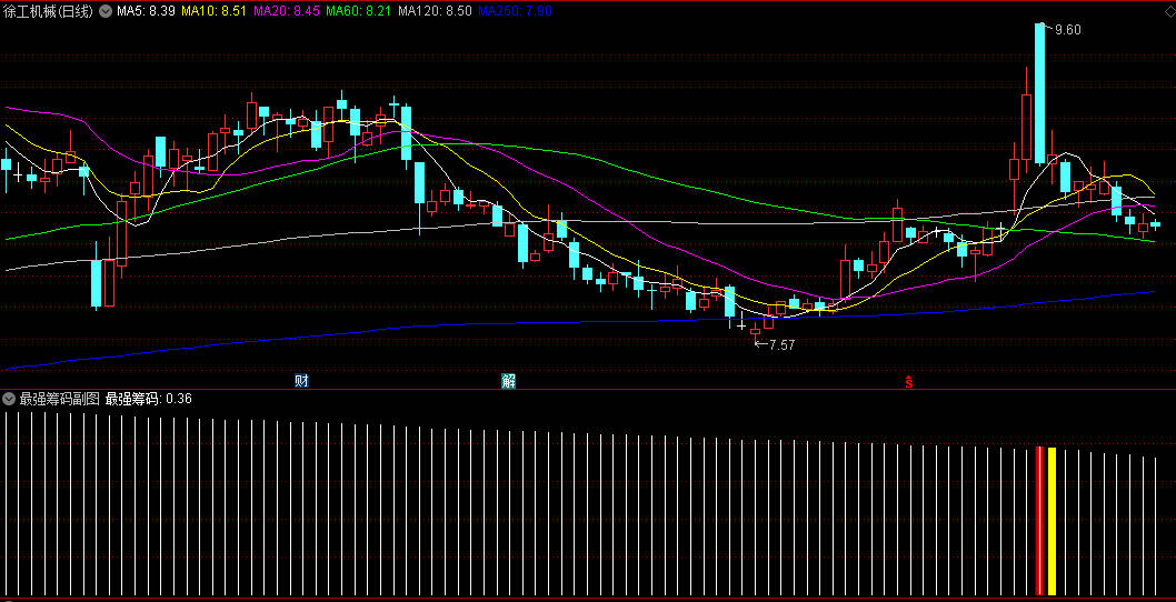 通达信【最强筹码】副图/选股指标,用于识别单峰密集区域以及判断趋势变化!