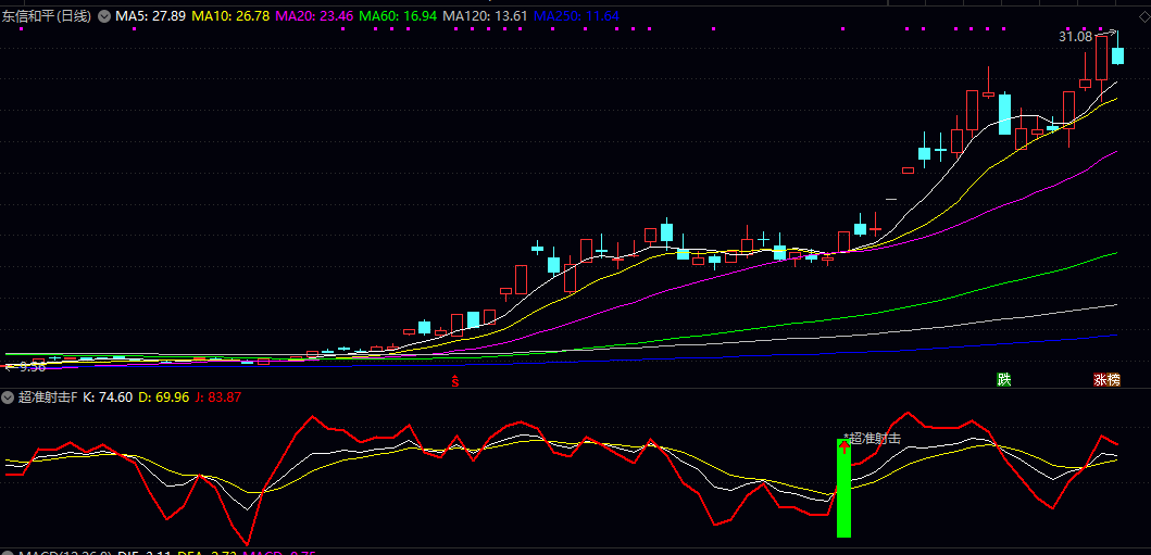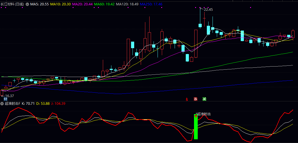 "超准射击"是一款高效实用的副图兼选股指标工具,专为捕捉短线强势起涨点设计,无未来函数。该指标通过三重智能过滤机制:首先计算股价在近期波动区间中的相对位置,其次结合短期趋势强度判断,最后筛选出符合连续调整后突然放量上攻的启动形态。