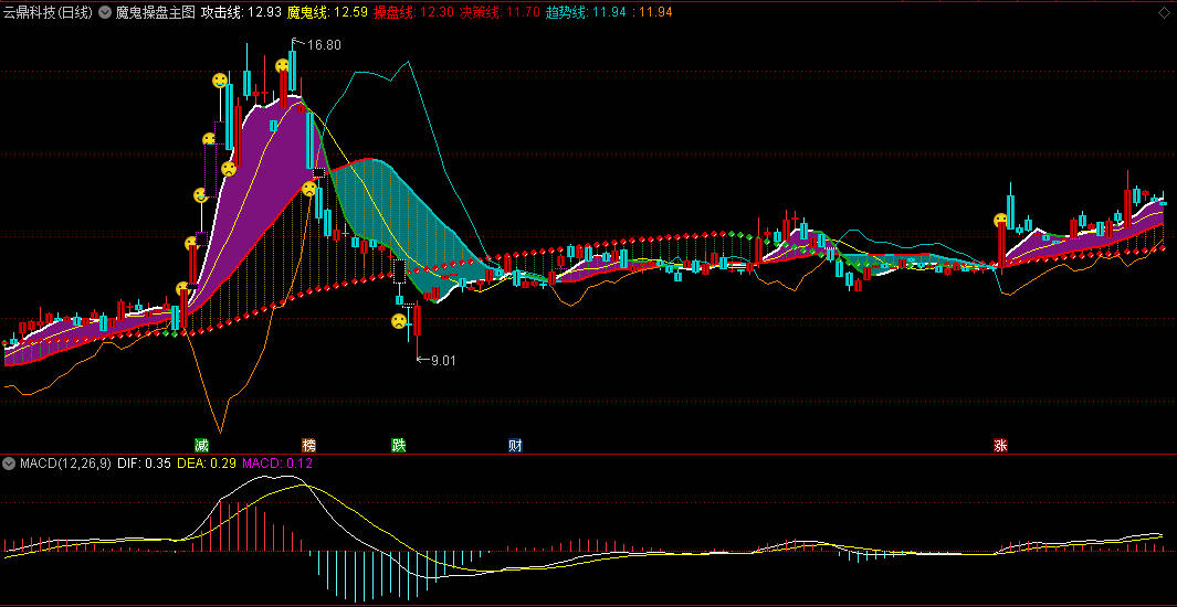 短线交易:结合攻击线与魔鬼线金叉死叉操作。