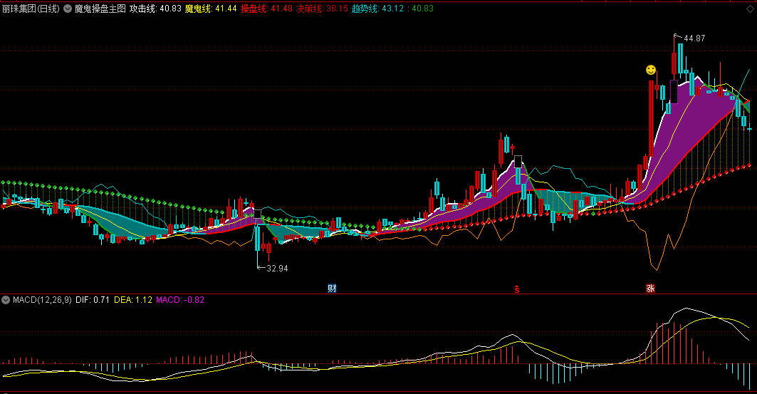 魔鬼线(10日均线):辅助判断短期波动,黄色线。