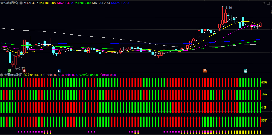 为回报好公式网论坛,现将自己珍藏多年的大道趋势指标贡献给大家,让大家能够轻松掌握股票趋势,买在牛股启动前。