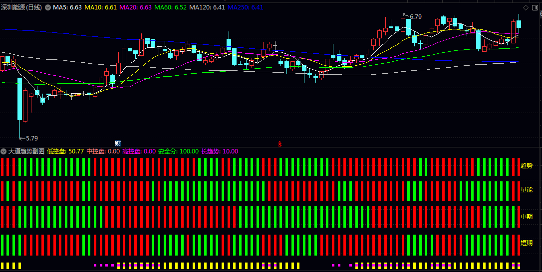 【大道趋势】副图/选股指标,四灯全红就买入,看见绿色就下车,买在牛股启动前!