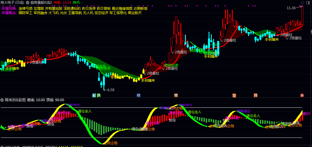 【趋势量能K线】主图+【精准波段】副图指标,根据趋势运行提示操作更稳妥,不含未来函数!