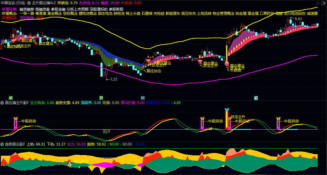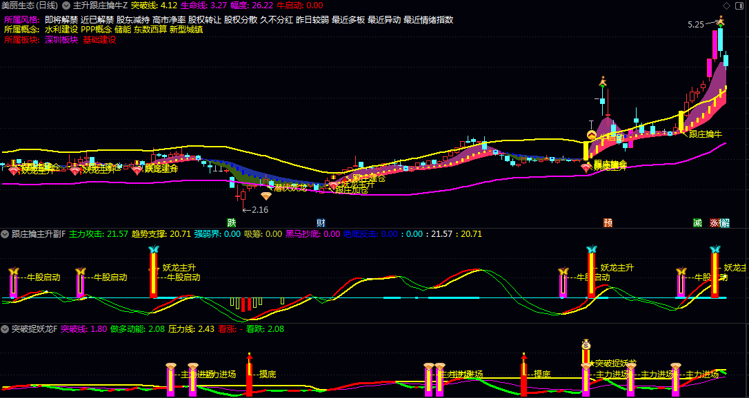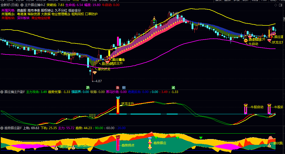 【主升跟庄擒牛】主图/副图/选股指标 1主3副16选股 多条件产生共振时找出大黑牛!