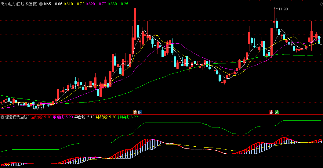 通达信【爆发强势启航】副图指标,结合13日线角度判断短期趋势强度,避免弱势反弹信号