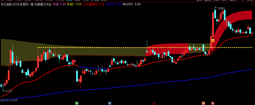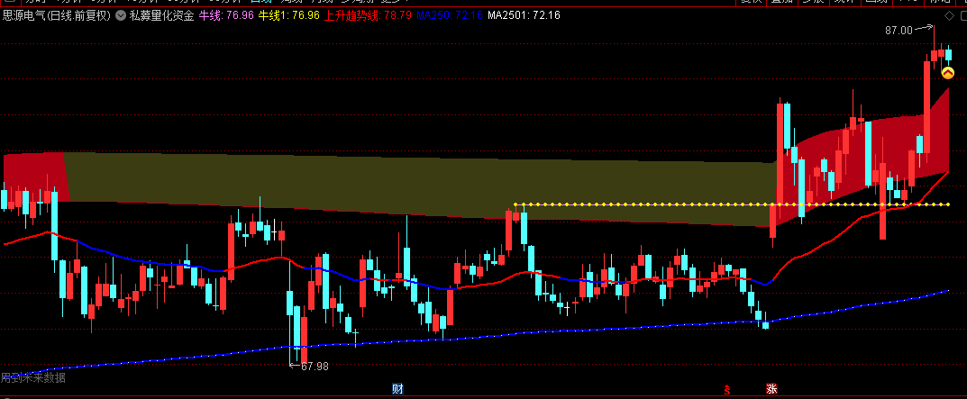 通达信【私募量化资金流】主图指标,成本区上升/趋势线红/出现私募买点时可重点关注!