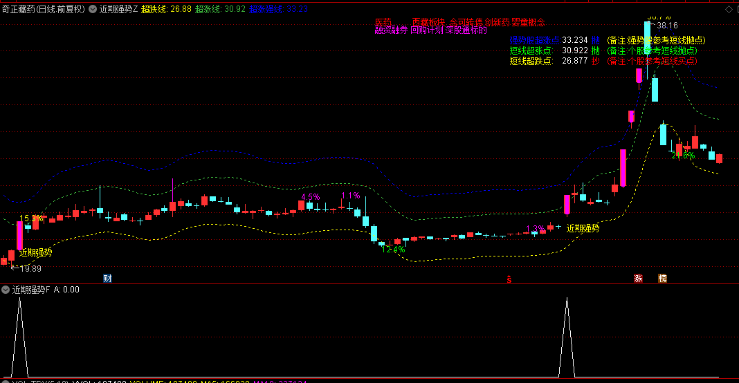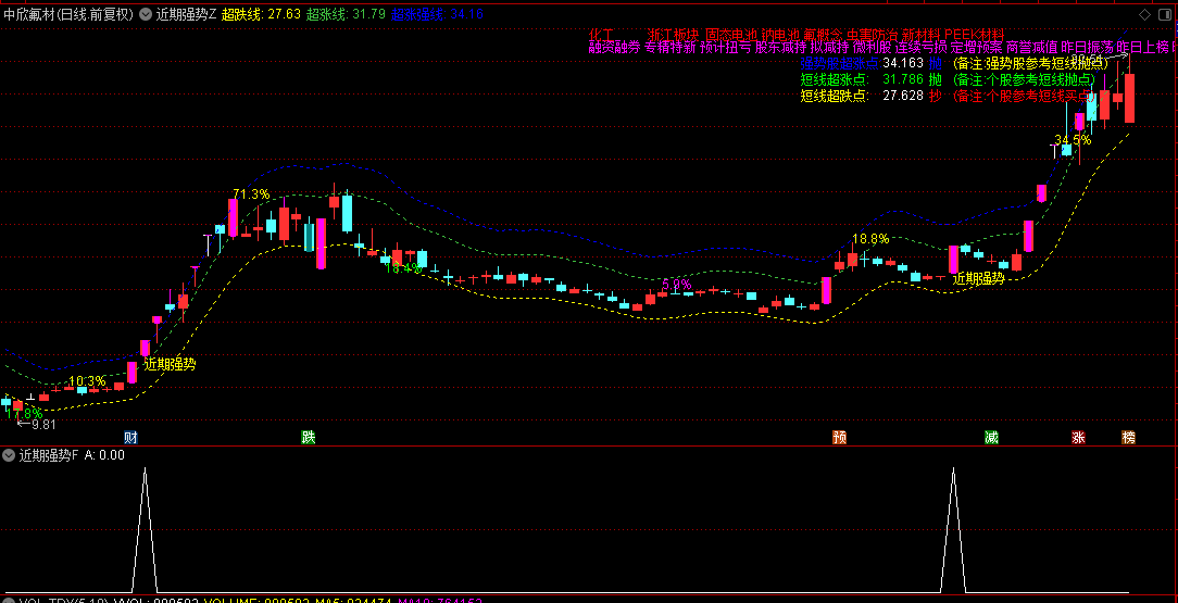 优品《近期强势》主图/副图/选股指标 趋势股突破后的加速阶段识别 超涨超跌的拐点判断