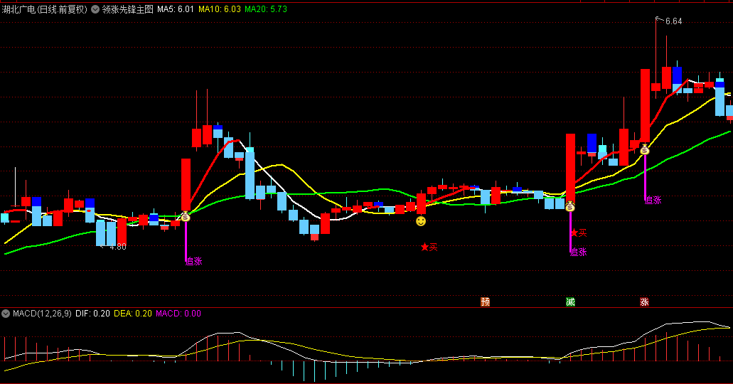 当出现红色★标记和笑脸图标时,为系统推荐买点