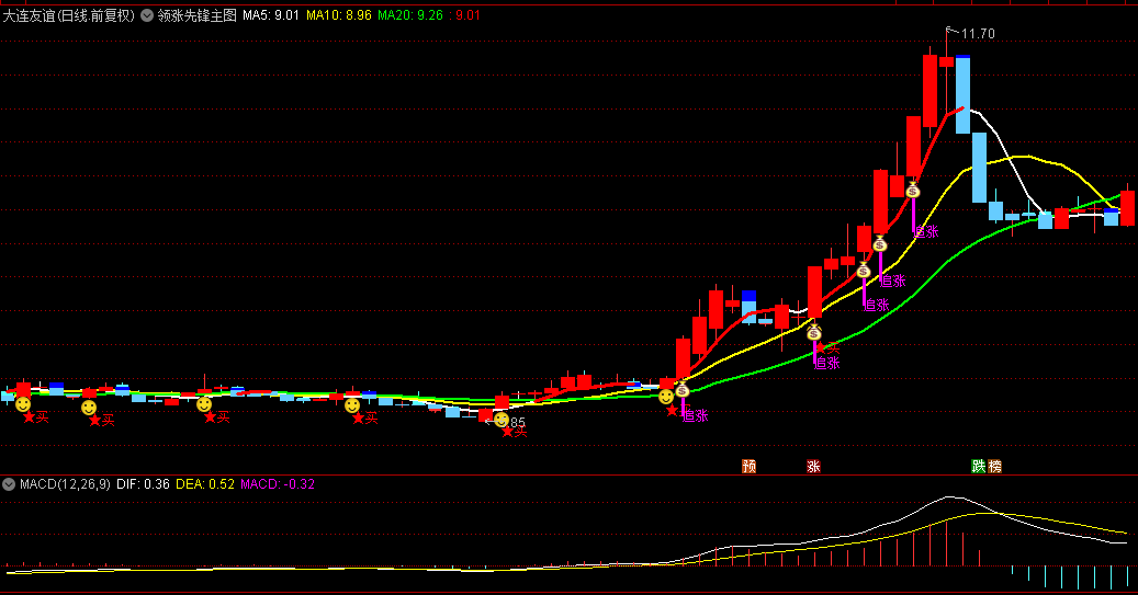 3.提供买卖信号:包含"笑脸"买点提示和"追涨"信号