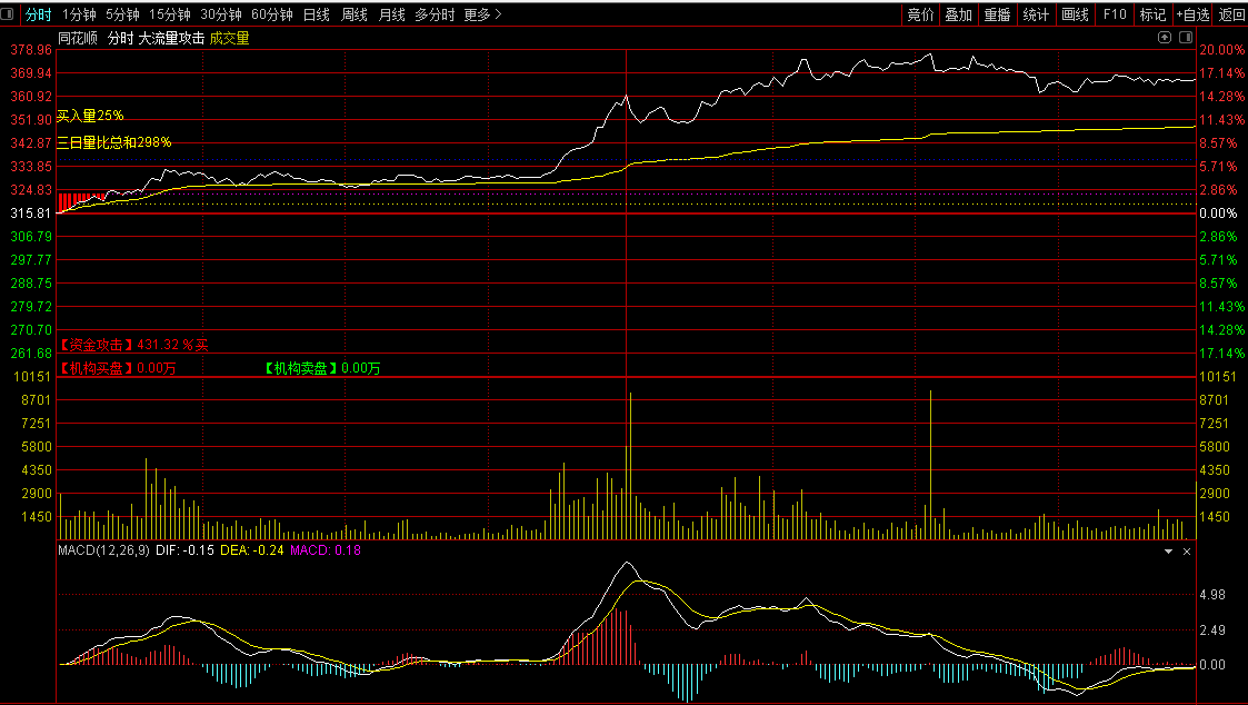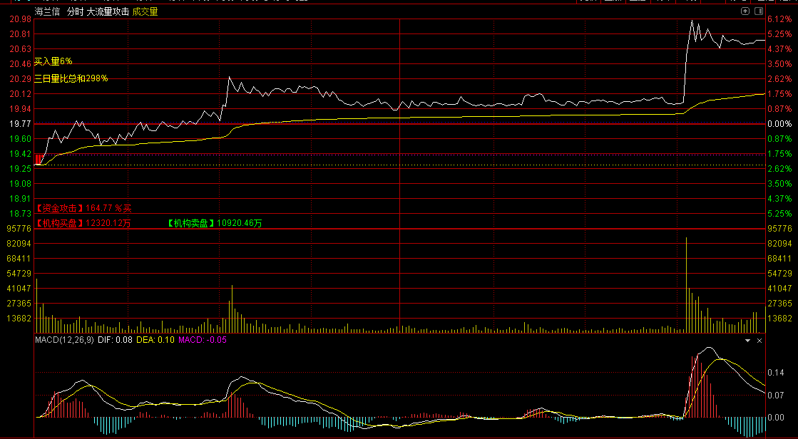 《大流量攻击》分时主图指标 当出现多个买入信号共振时准确度更高 配合成交量使用