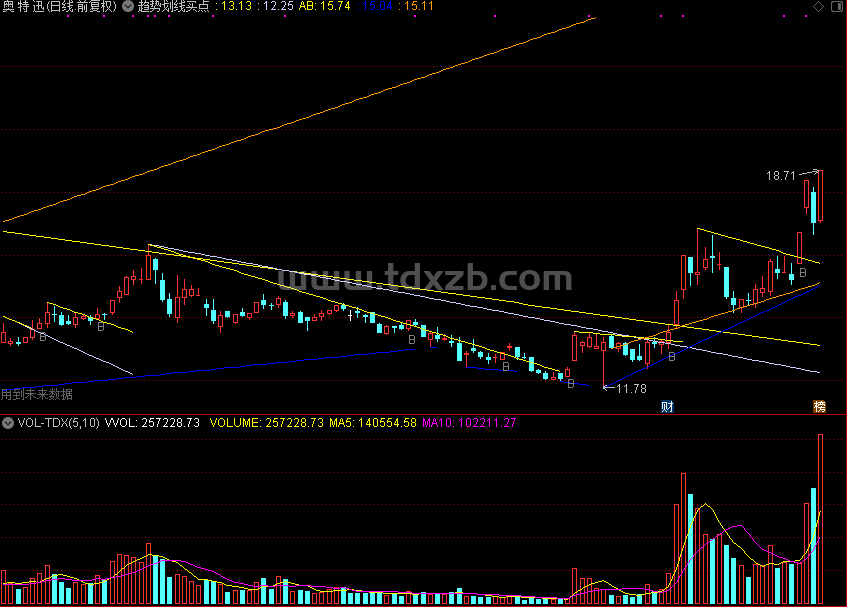 AB:DRAWLINE(HIGH>=HHV(HIGH,10),HIGH,LOW<=LLV(LOW,3),HHV(HIGH,3),1),COLORYELLOW;