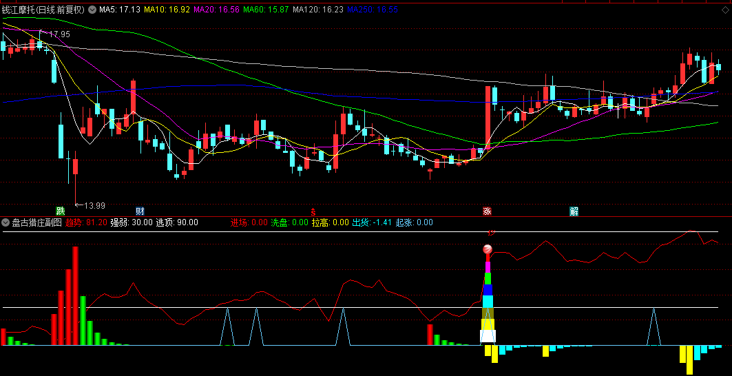 3.风险预警:黄色柱状线提示拉高诱多,青色柱状线警示出货风险。
