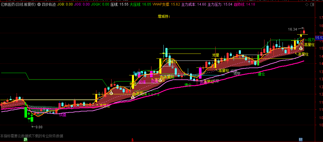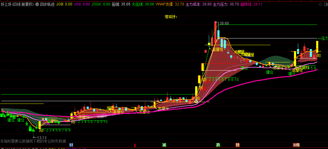 【四步轨迹】主图指标 通过建仓→试盘→洗盘→拉升四阶段模型 判断个股起爆时机