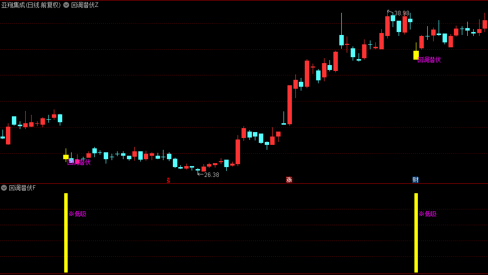 今选【回调潜伏】主图/副图/选股指标,通过量化回调幅度与企稳信号,提示潜在低吸点位!