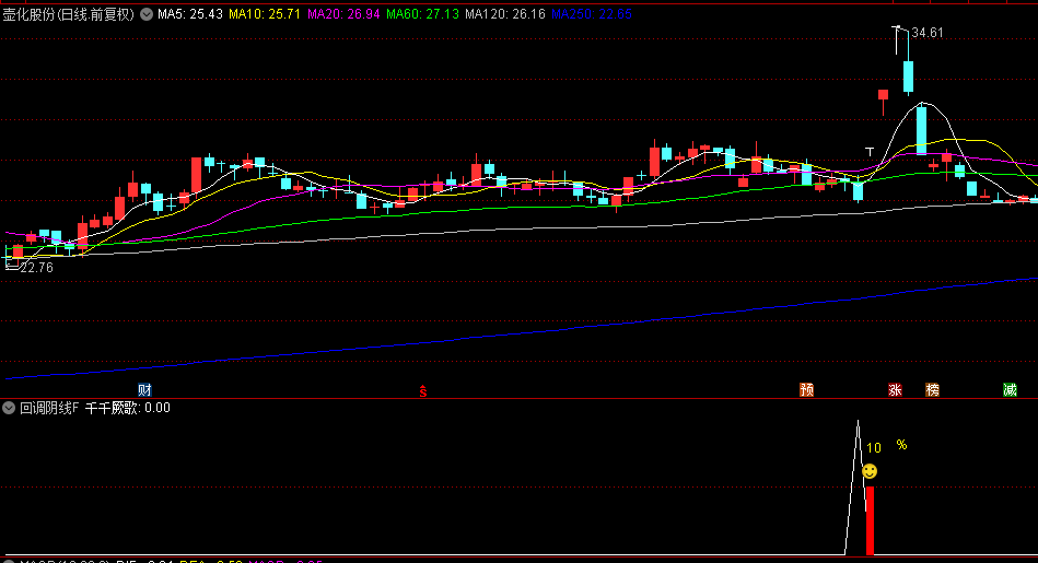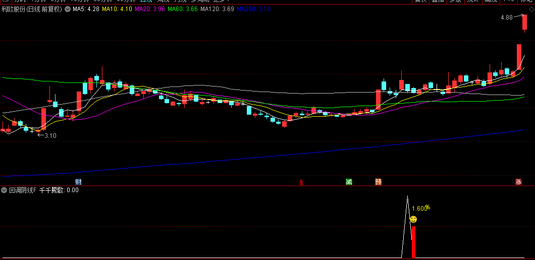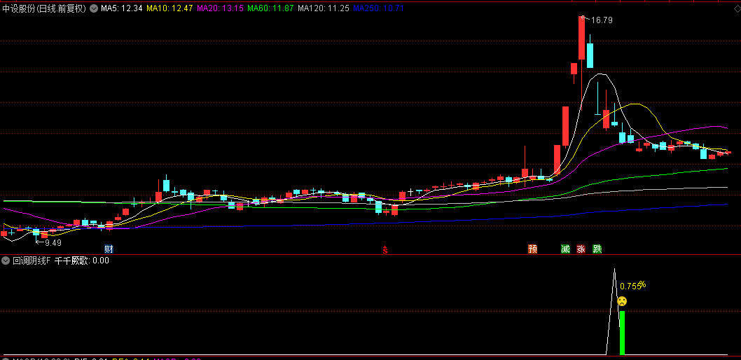 2.趋势回调型:股价处于上升趋势中(5日均线高于14日均线),回调时出现缩量阴线,后续可能延续涨势。