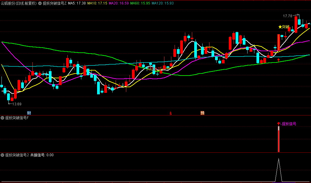 共振信号:同时满足拉升信号和趋势指标金叉信号,意味着量能、价格走势和趋势指标形成共振,可能是股价即将进入拉升阶段的信号。