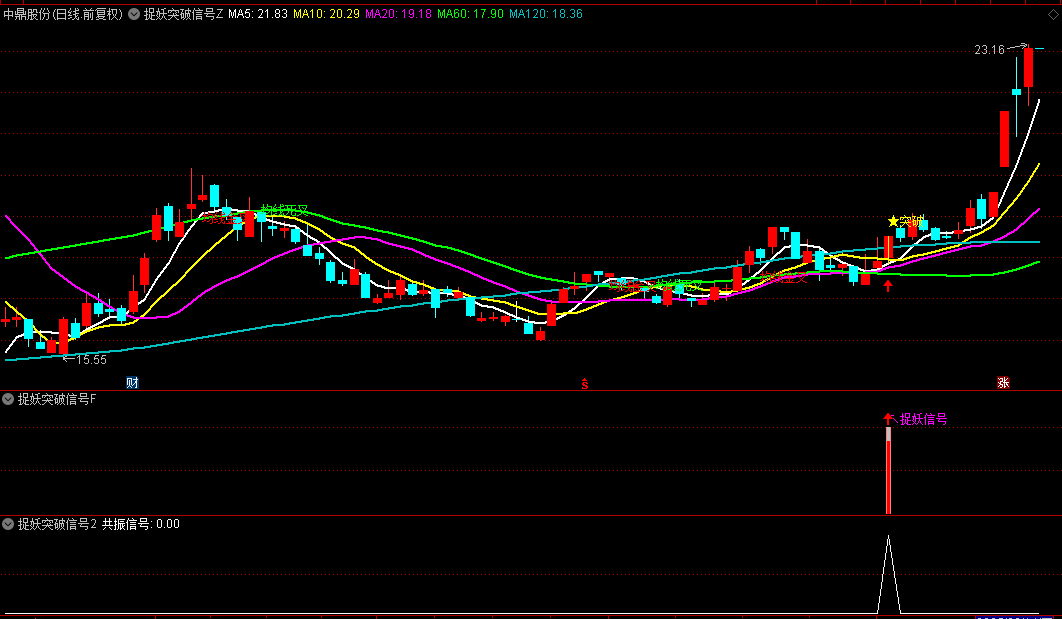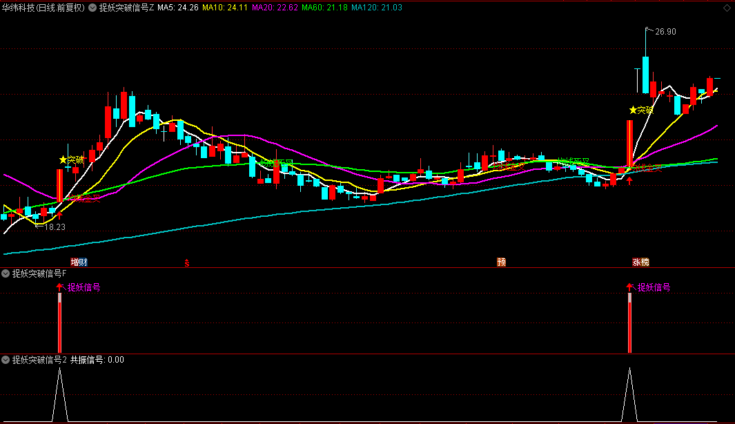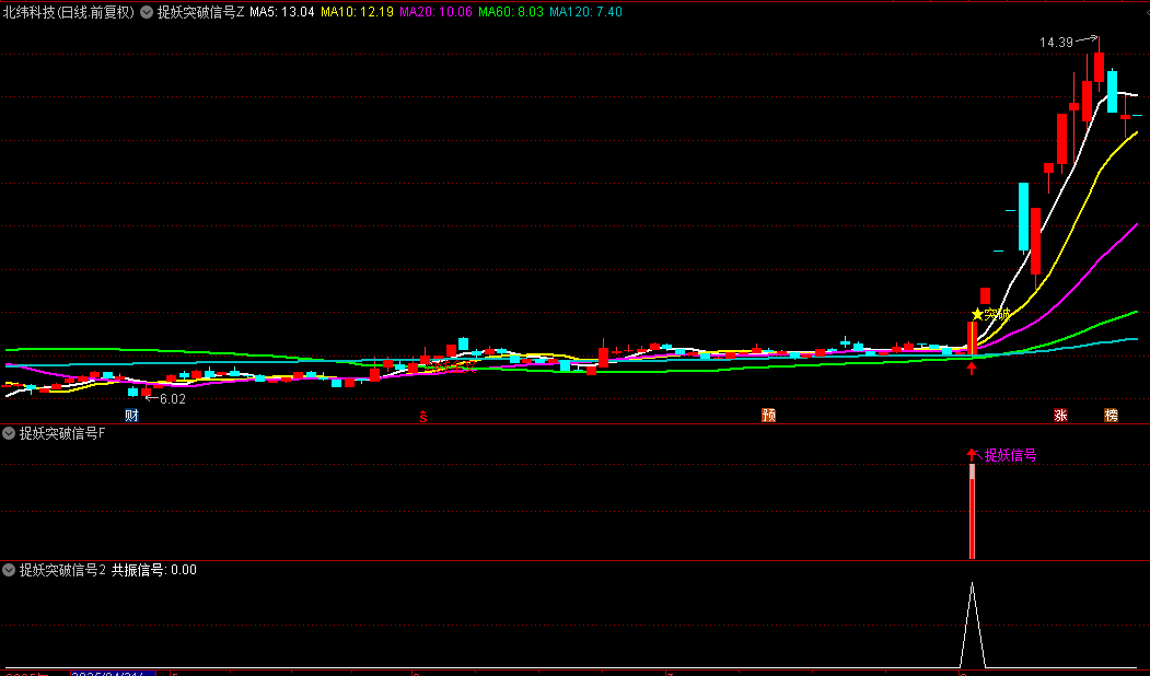 【捉妖突破信号】主图/副图/选股指标 同时满足拉升信号和趋势指标金叉信号 进入拉升阶段