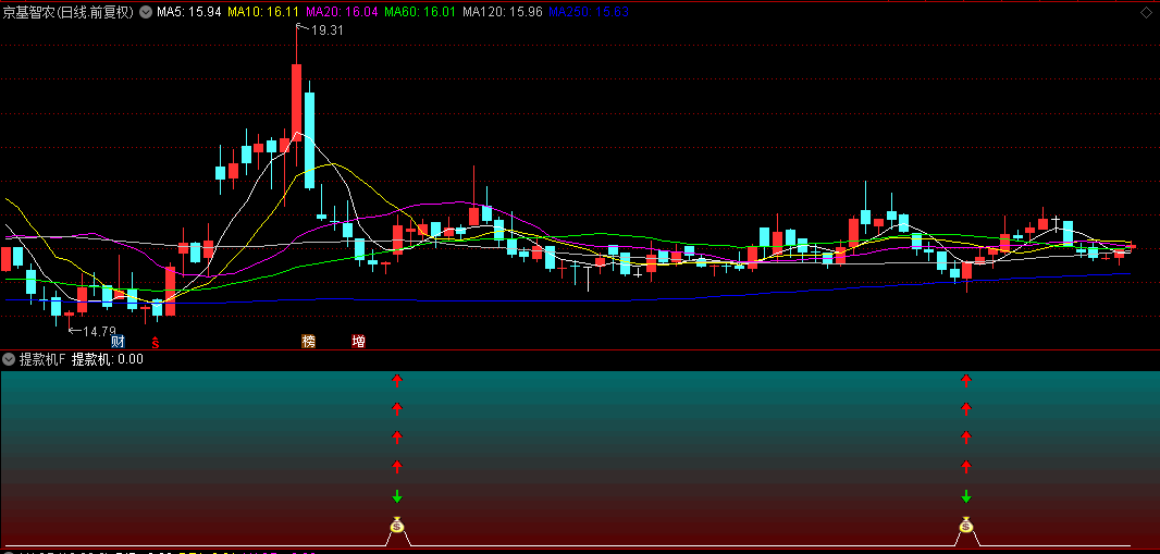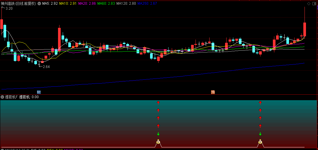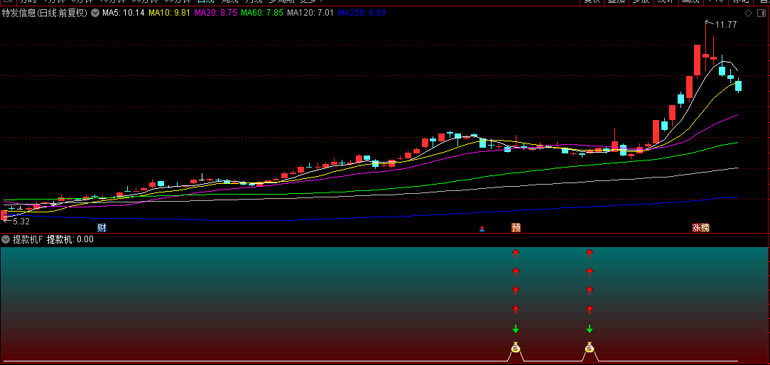 直接使用"提款机选股"条件进行筛选,可快速锁定同时满足趋势金叉和动能突破条件的个股,建议结合成交量确认。