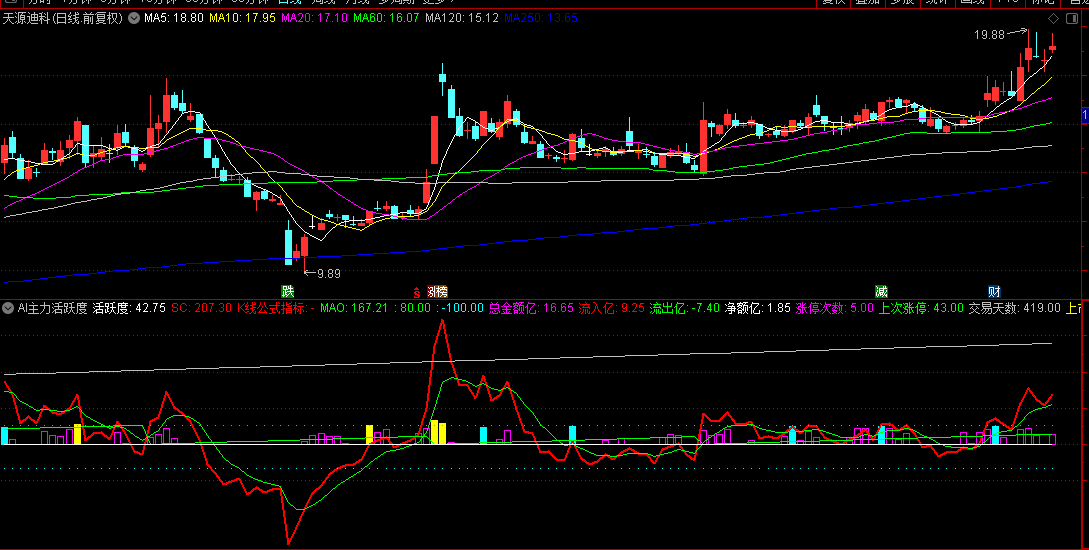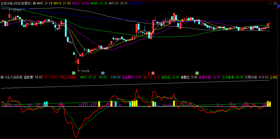 AI主力活跃度是一款用于分析市场资金动向的副图技术指标。它通过监测主力资金在个股中的活跃程度,帮助投资者判断资金的流入流出状态,捕捉短期交易机会。