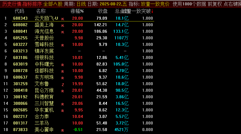 2.副图/选股模式:可通过条件选股功能筛选同时满足“量比>1.8+突破分歧线+突破上轨”的个股,重点关注7日内首次出现信号的标的。