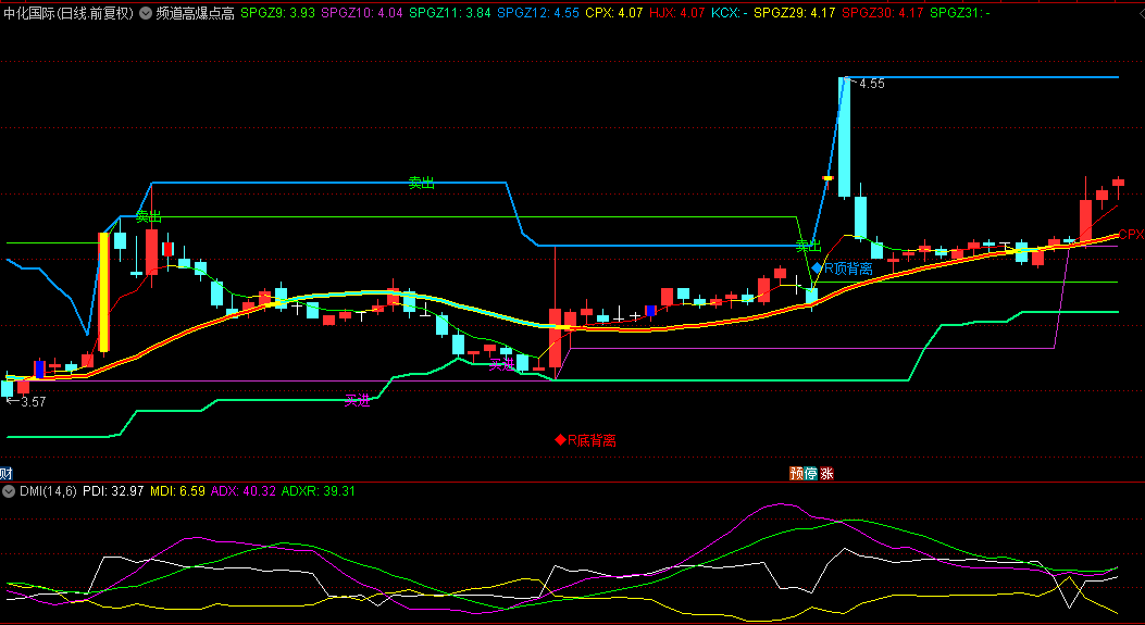 黄色粗线(CPX)为中长期趋势基准,股价运行于红色通道上方代表强势,蓝色下方则为弱势。结合5日均线颜色变化(红涨绿跌)可强化趋势确认。